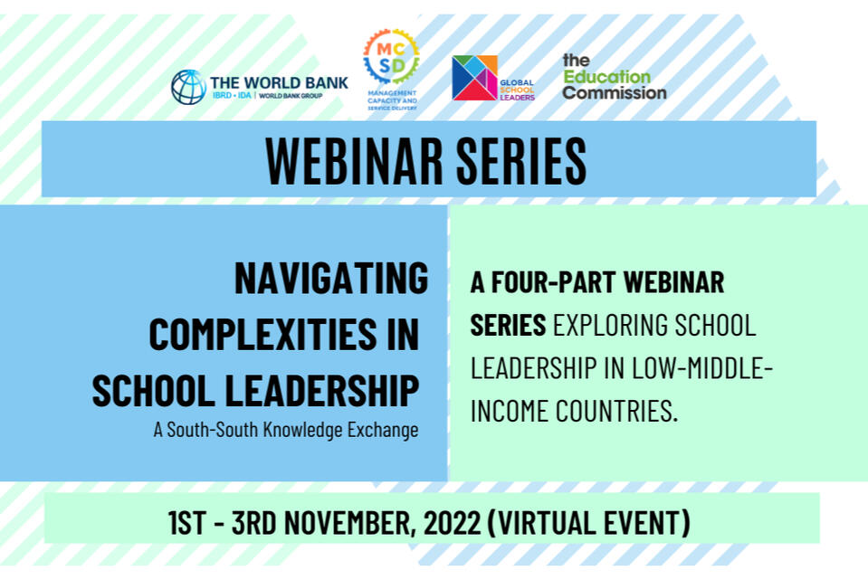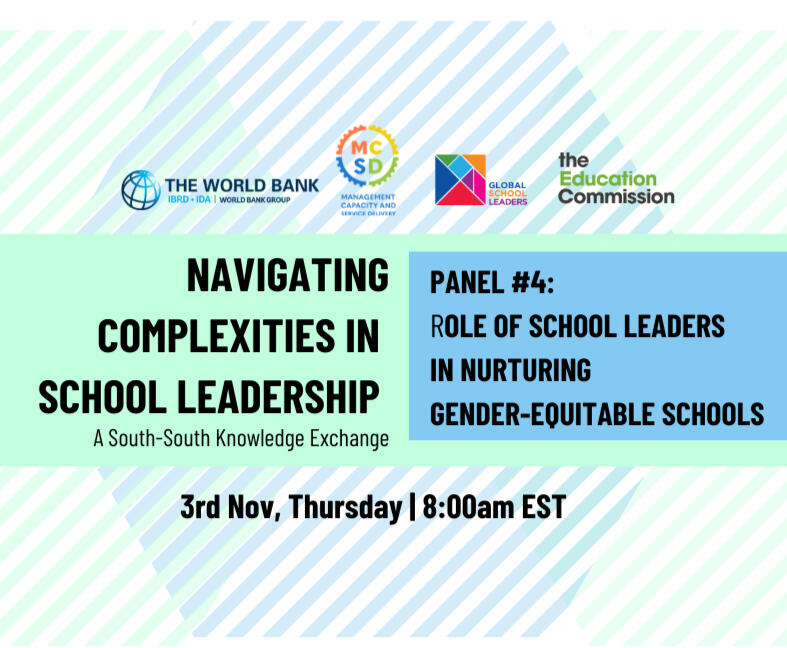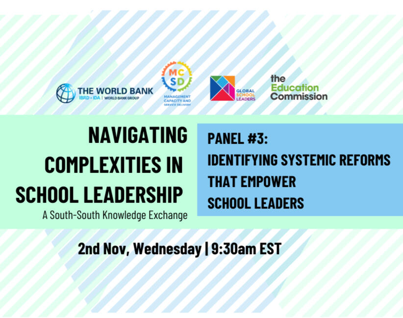 Global School Leaders, in partnership with The World Bank and the Education Commission, hosted a series of four dialogues to unpack the state of education leadership in low-middle-income countries (LMICs).Our second edition of the South-South Knowledge Exchange Series aimed to unpack nuanced perspectives across key focus areas that inform how schools are designed and led.These dialogues facilitated knowledge sharing across large-scale programs and initiatives, bringing together representatives of academia, government, civil society, and philanthropy from countries in Latin America, Africa, and Asia.
